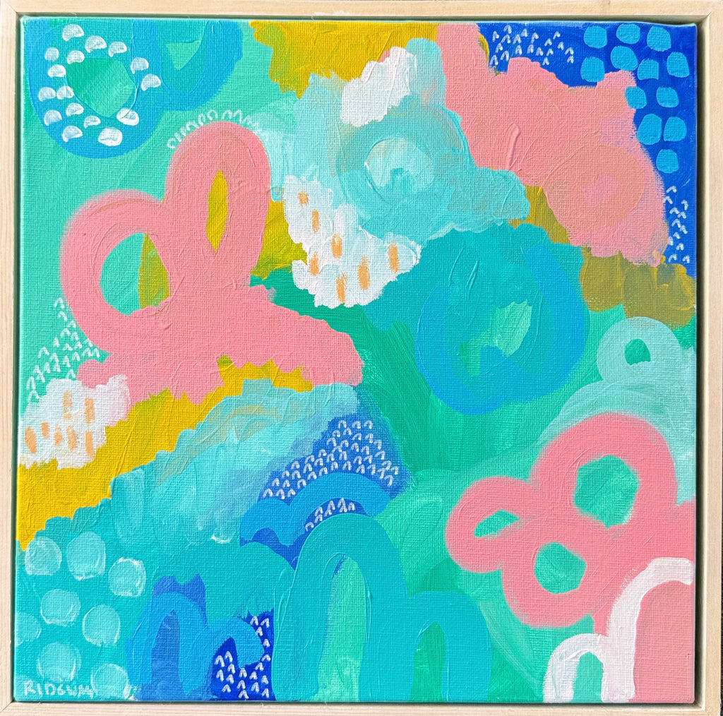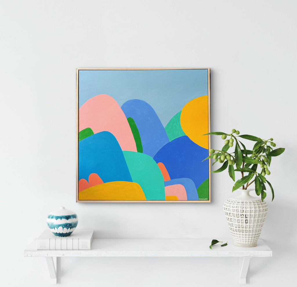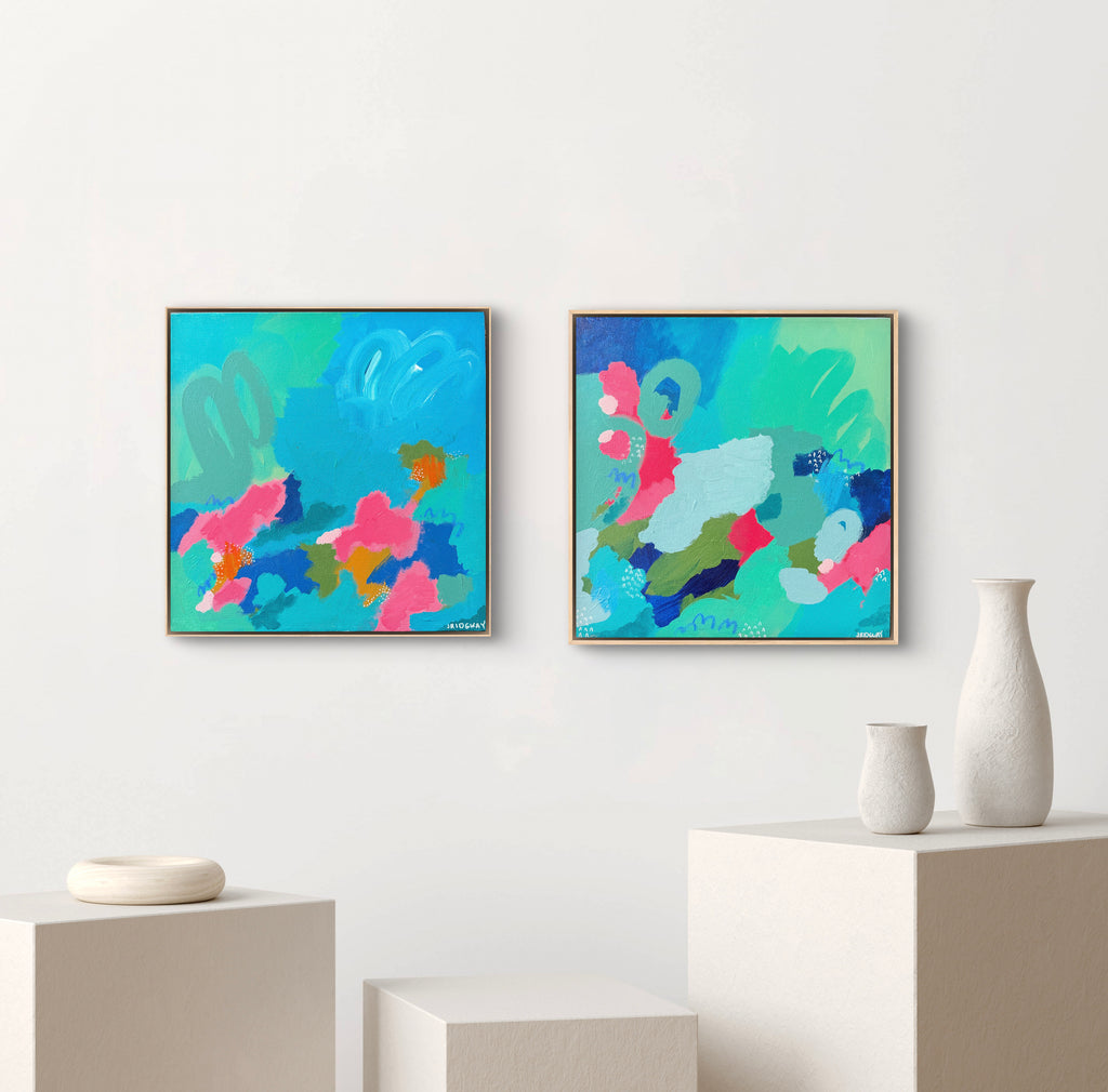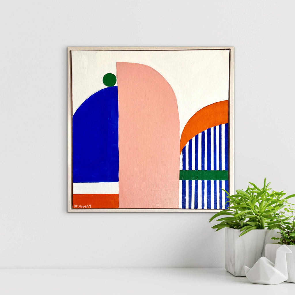 As an interior designer, Joc is surrounded by colour and pattern. These works are inspired by these elements and incorporate her love of balance and scale. Visually beautiful both close up and far away.