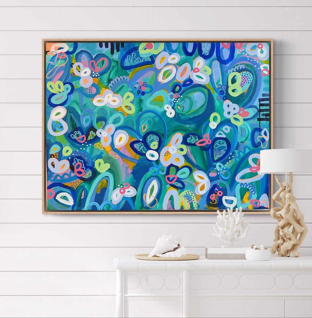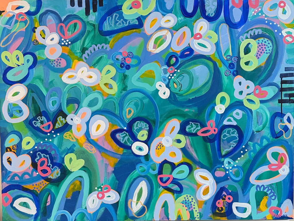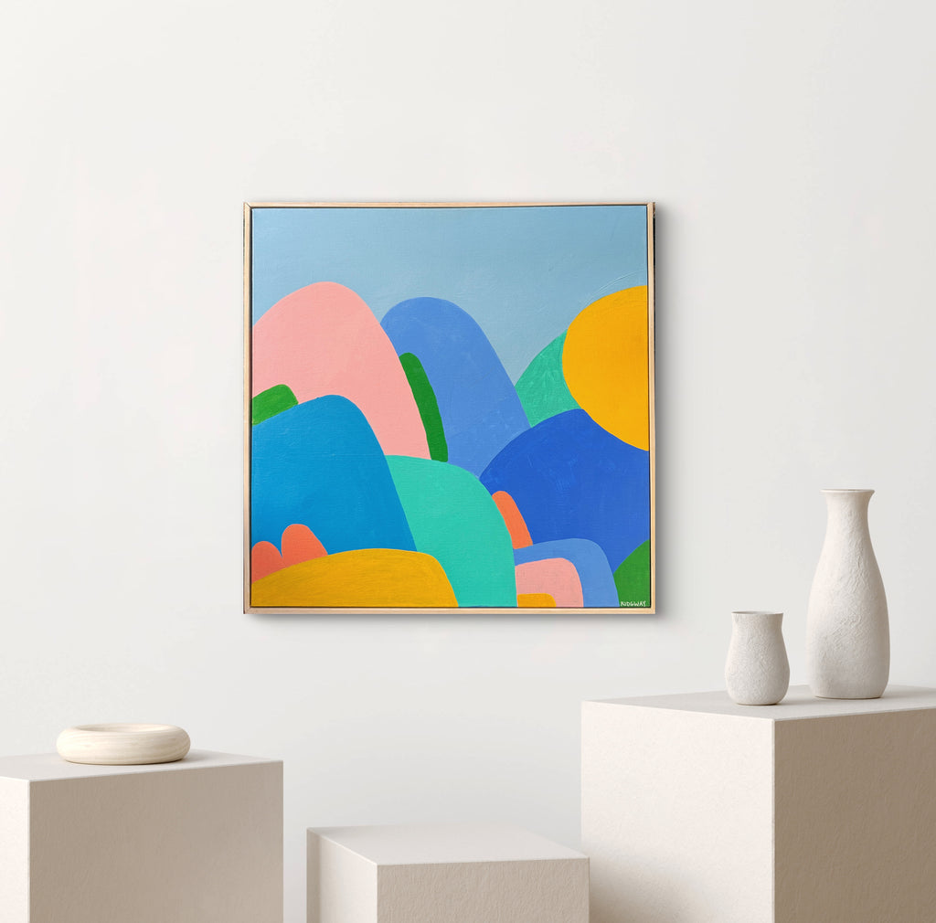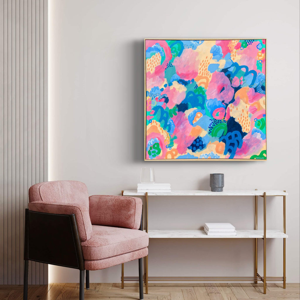 As an interior designer, Joc is surrounded by colour and pattern. These works are inspired by these elements and incorporate her love of balance and scale. Visually beautiful both close up and far away.