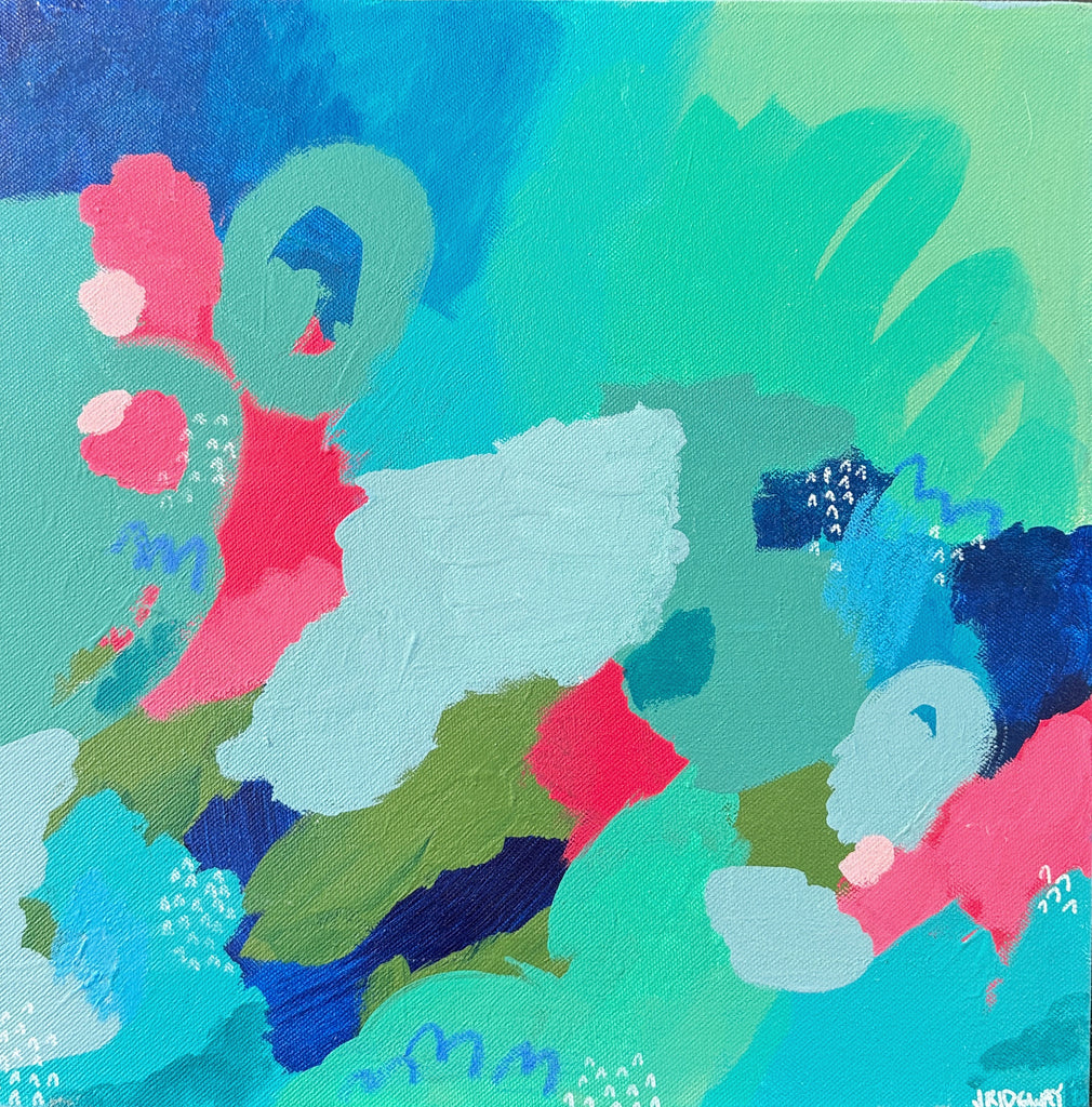 Acrylic, pencil, oil stick on stretched canvas. Sealed for colour fastness and protection.